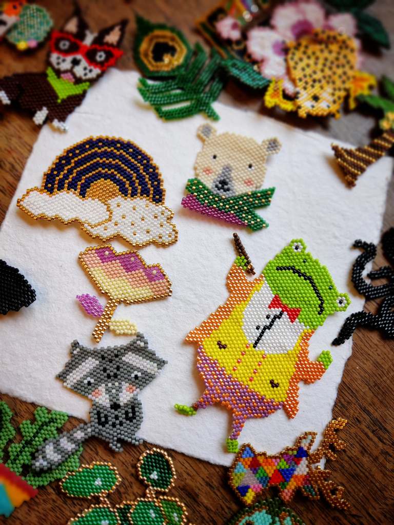 Miyuki est le nom d’un fabricant de perles japonaise en verre. Il produit de nombreuses perles aux formes, couleurs et effets différents, des perles de rocailles classiques, mais aussi des perles en verre cylindrique appelées les Delica. C’est avec ces dernières perles que je vous propose d’apprendre la méthode de tissage Brick Stitch pour fabriquer des broches, des boucles d’oreilles et différents autres petits bijoux.